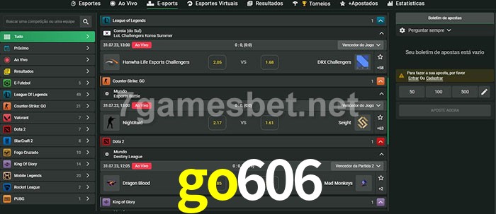 O go606 oferece uma grande seleção de opções de apostas em e-sports com probabilidades competitivas